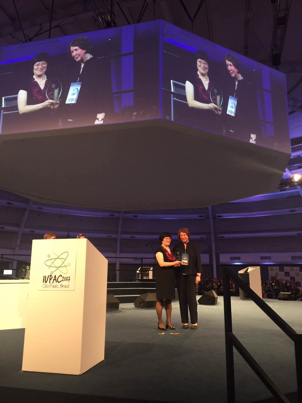 当地时间2017年7月9日晚,国际纯粹与应用化学联合会(International Union of Pure and Applied Chemistry,IUPAC)第46届学术大会暨第49届代表大会开幕式在巴西圣保罗世贸中心举行。开幕式上,IUPAC主席Natalia Tarasova为我院迟力峰教授颁发了2017年度IUPAC化学化工杰出女性奖(Distinguished Womenin Chemistry / Chemical Engineering Award)。在此谨向迟力峰教授表示热烈祝贺!