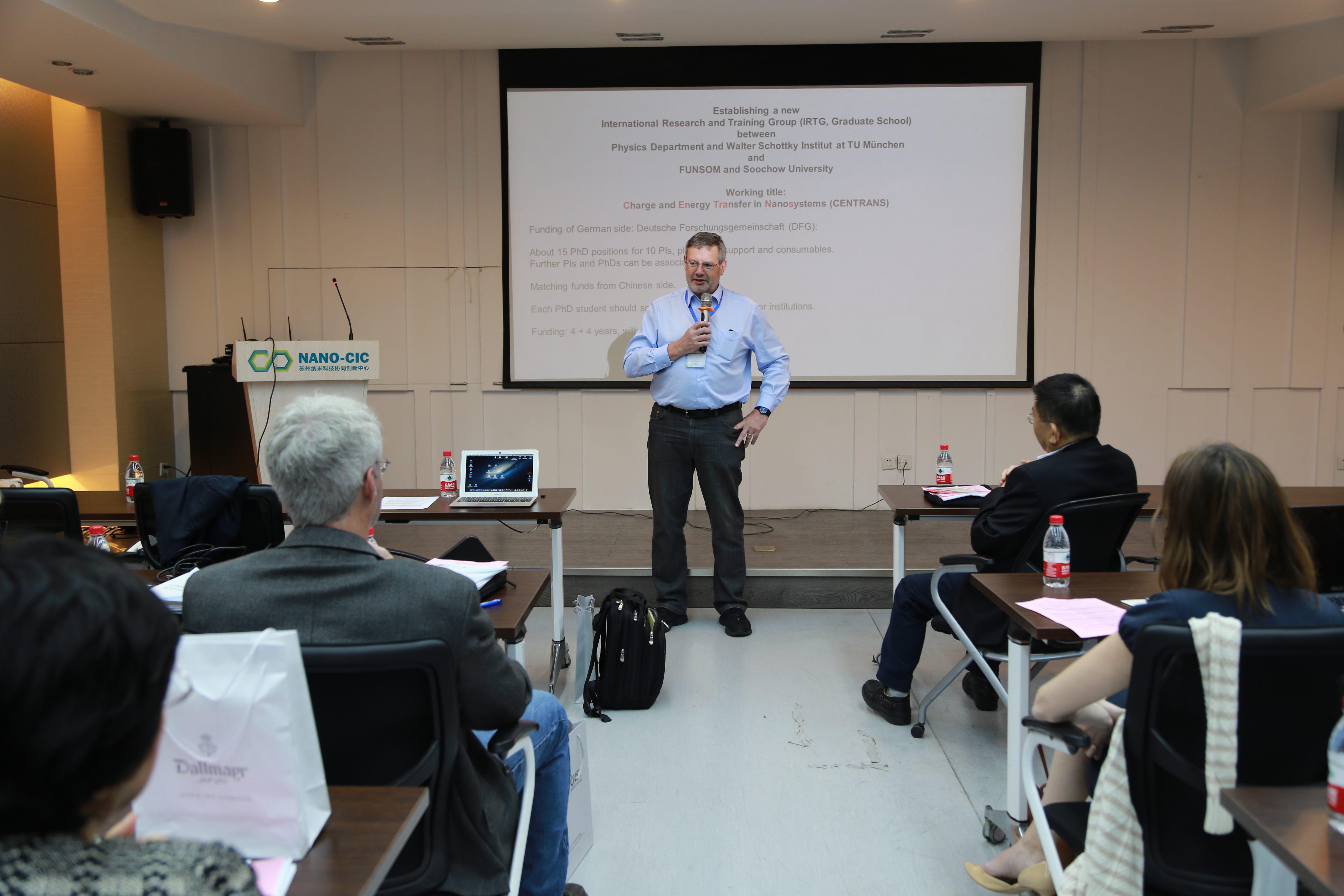 慕尼黑工业大学-苏州大学双边研讨会于2017年10月30-31日在我院成功举行。会议以“纳米体系的电荷和能量转移”为主题,以共建中德联合研究院为背景,对纳米科技的前沿问题进行了交流和探讨。德国慕尼黑工业大学的Martin Stutzmann教授、Martin Brandt教授、Katharina Krischer教授、Ian Sharp教授、Corinna Hess教授、Gregor Koblmüller博士以及Ursula Wurstbauer博士应邀参加了会议。