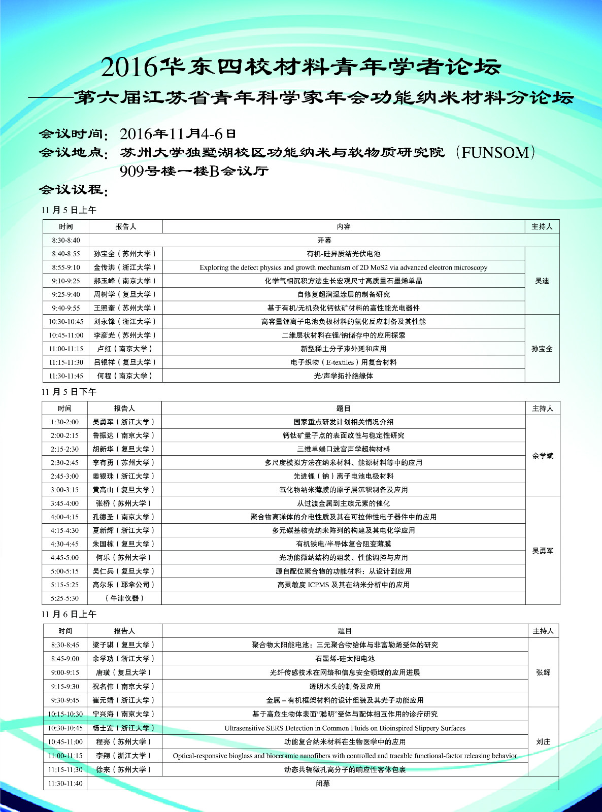 11月5日-11月6日2016华东四校材料青年学者论坛