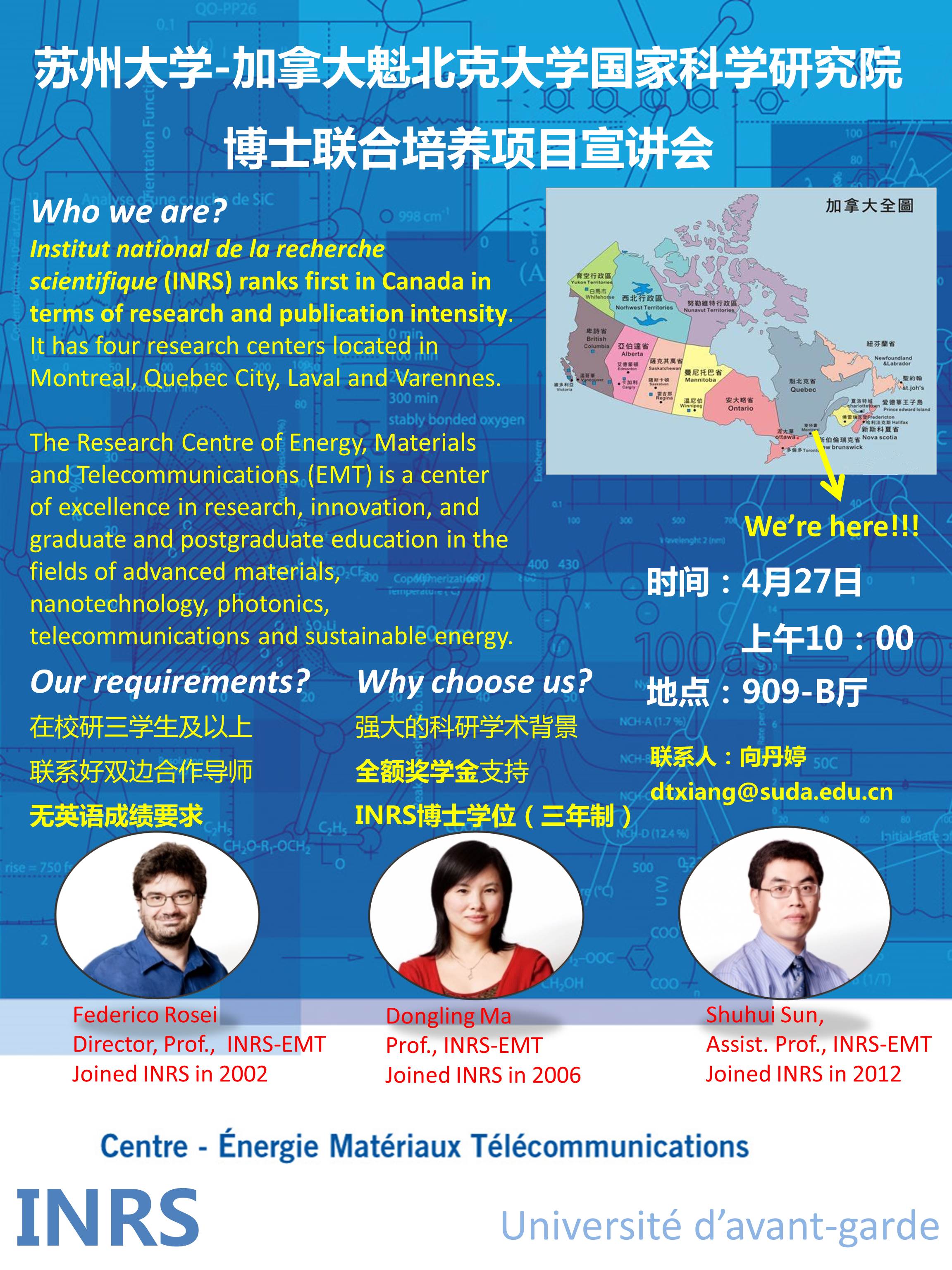 苏州大学-加拿大魁北克大学国家科学研究院博士联合培养项目宣讲会