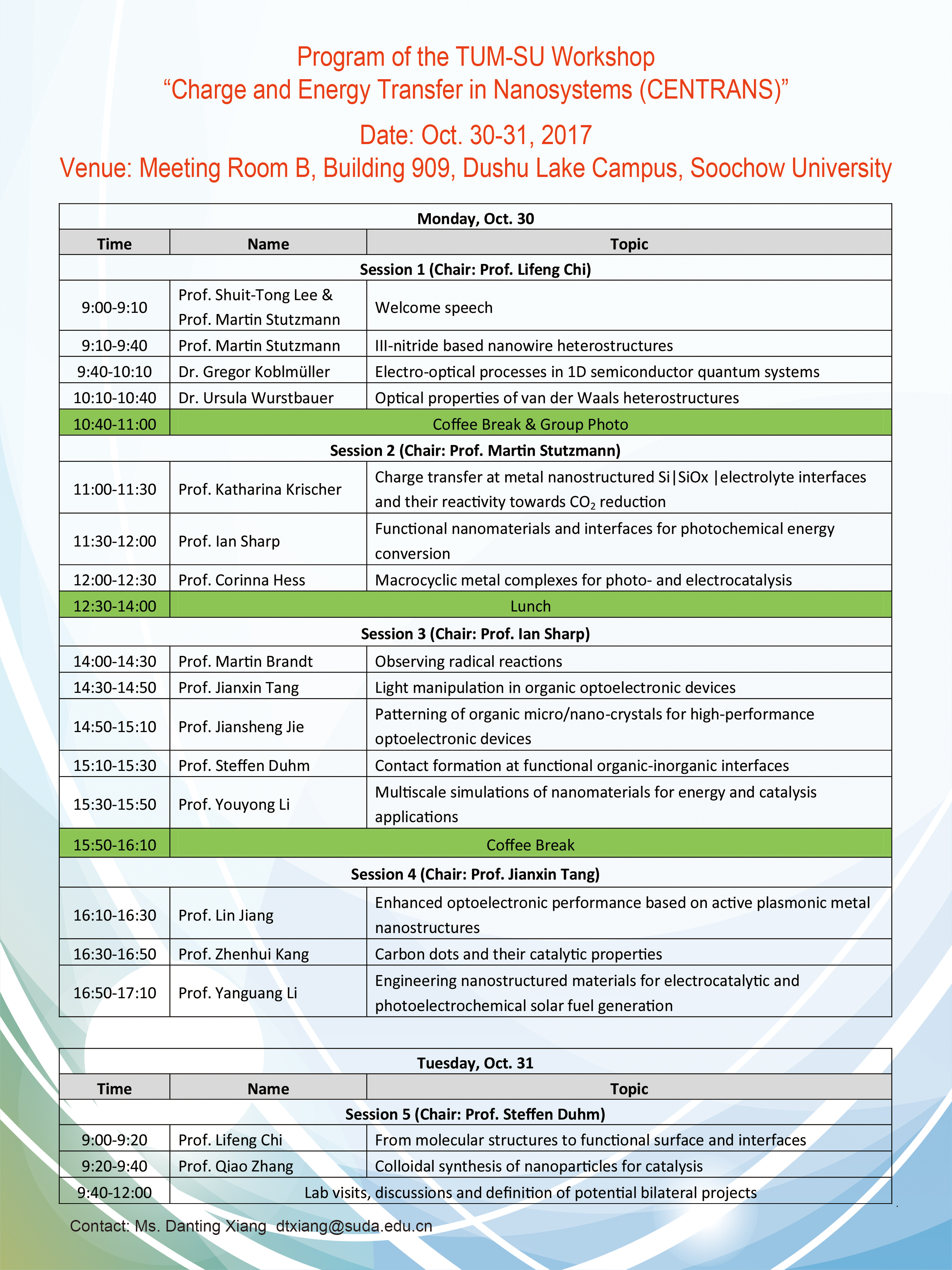 慕尼黑工业大学-苏州大学双边研讨会:纳米体系的电荷和能量转移