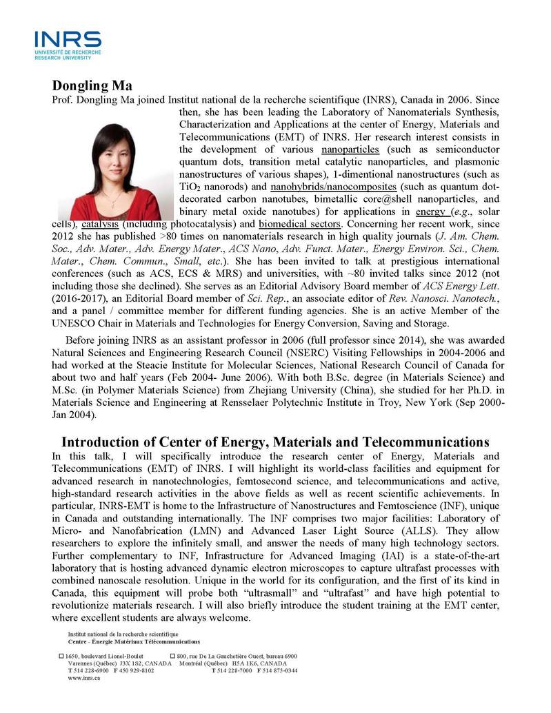 报告题目二:Introduction of Center of Energy, Materials and Telecommunications