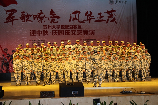 2015年9月27日,恰逢中秋佳节,由苏州大学党委宣传部、苏州大学学生工作部、苏州大学团委、苏州大学人武部联合举办的“迎中秋・庆国庆”文艺竞演在独墅湖影剧院拉开了序幕,独墅湖校区的11个学院分别派出了新生代表队参加竞演,各学院的新生辅导员以及军训官兵出席了活动。