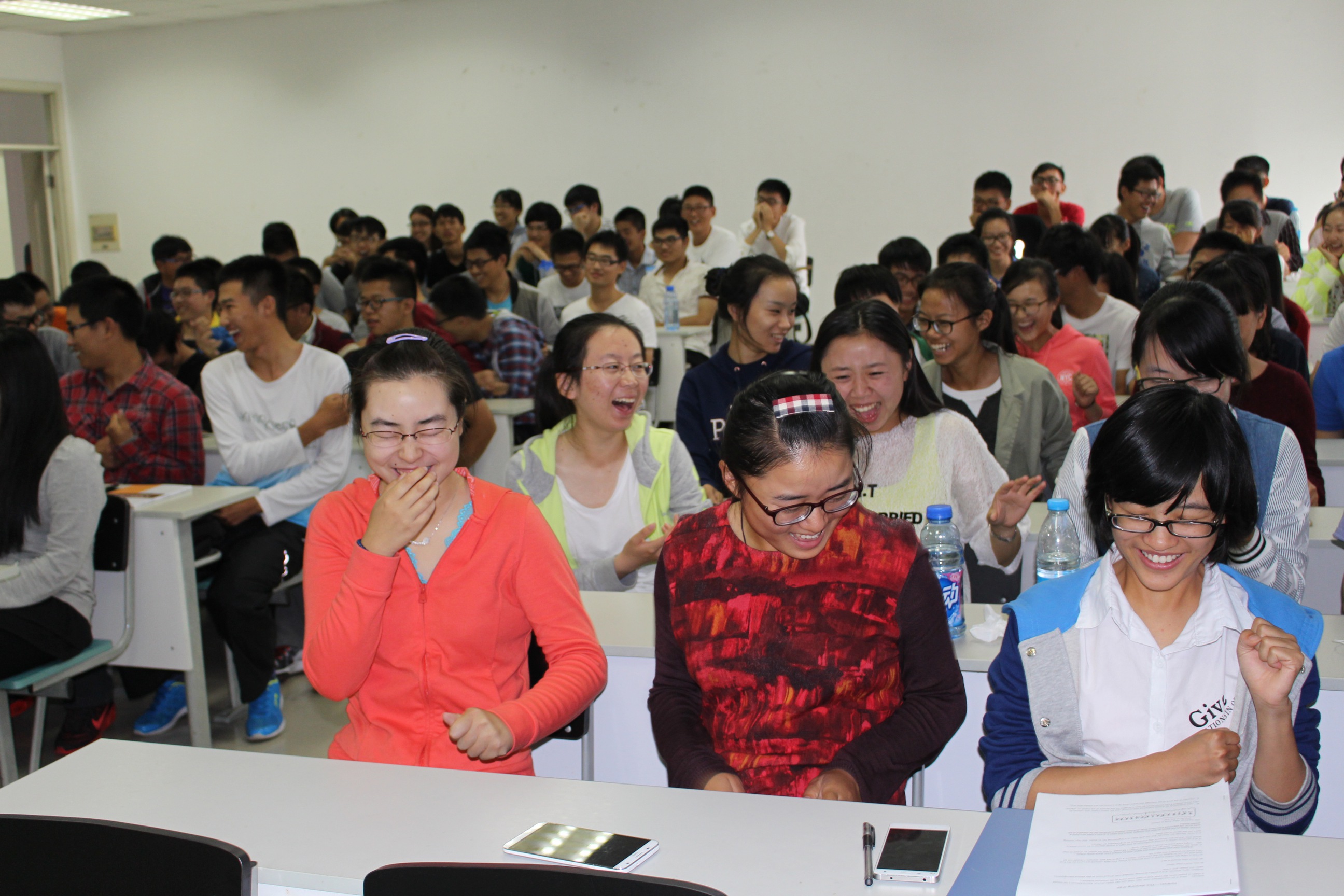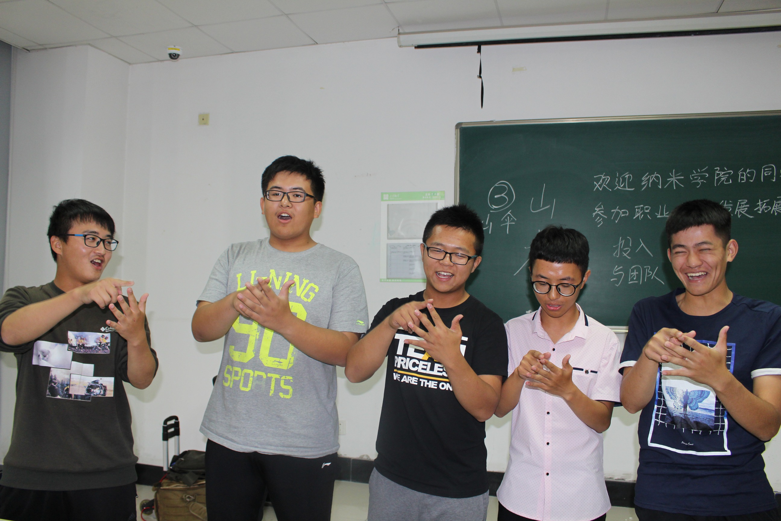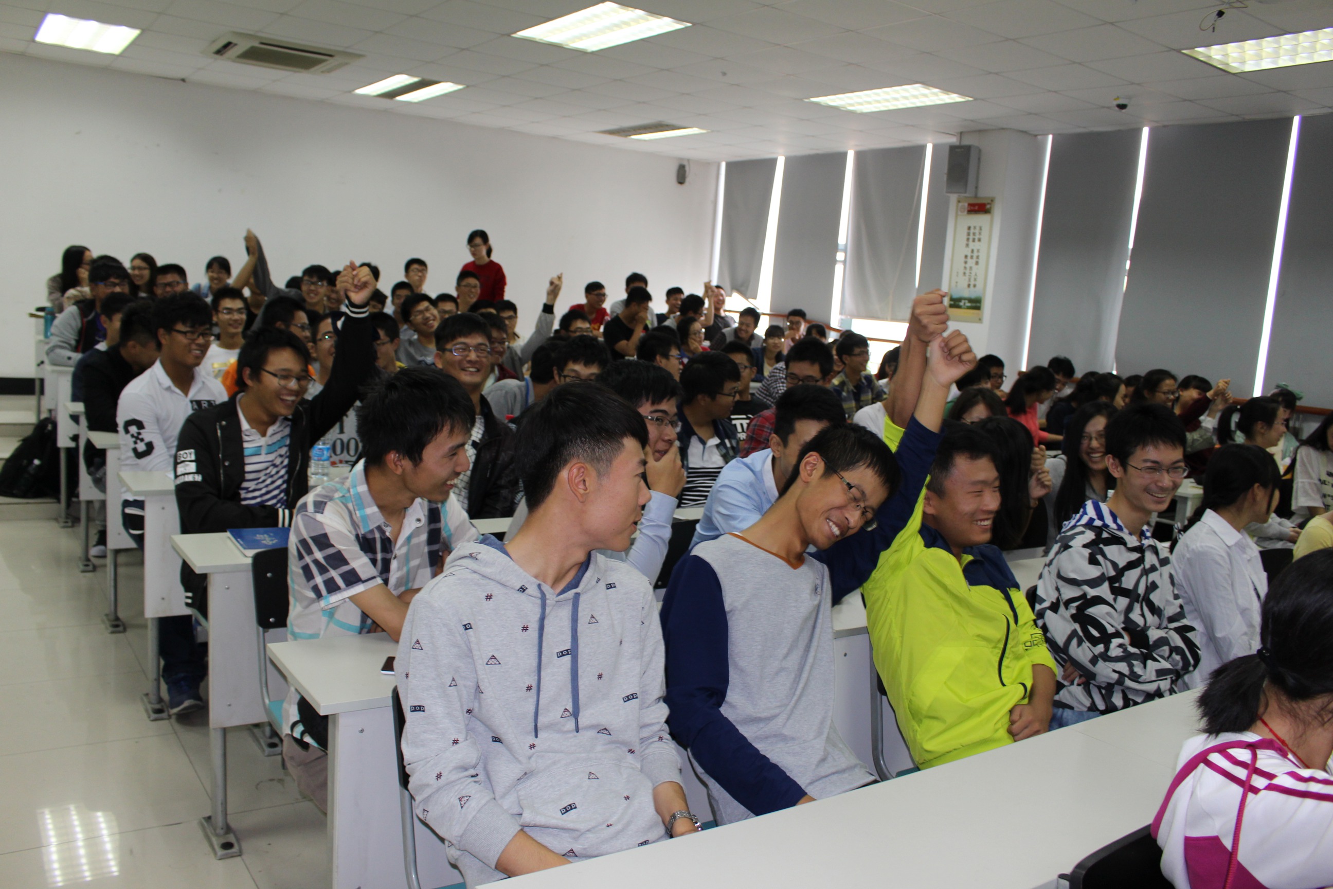 初入大学的新生们对大学生涯充满了好奇与期待,于是学院特地邀请了专业的拓展团队对大一学生进行了专业的辅导。下午一点,阳光正好的时间,职业生涯发展规划的老师与同学们进行了见面。老师先用一个抓手指的游戏来作为今天活动开始的标志。同学们摩拳擦掌、迫不及待,却由于老师的“诡计”而不能按照规则完成游戏。笑声传遍了整个教室,对于接下来的活动,同学们更是期待。