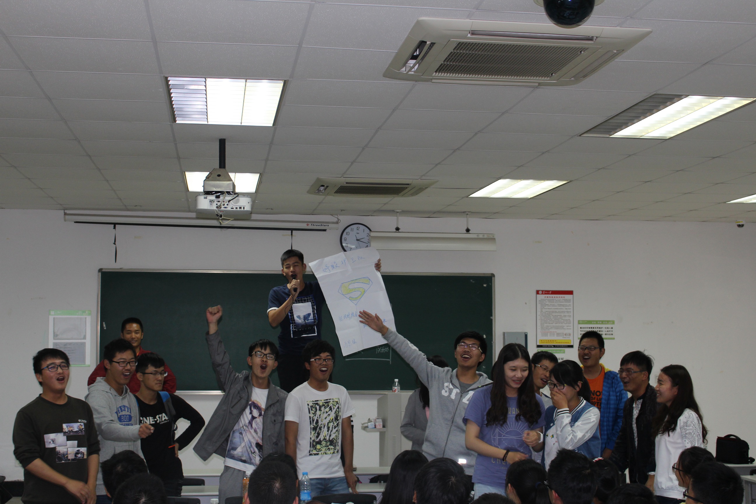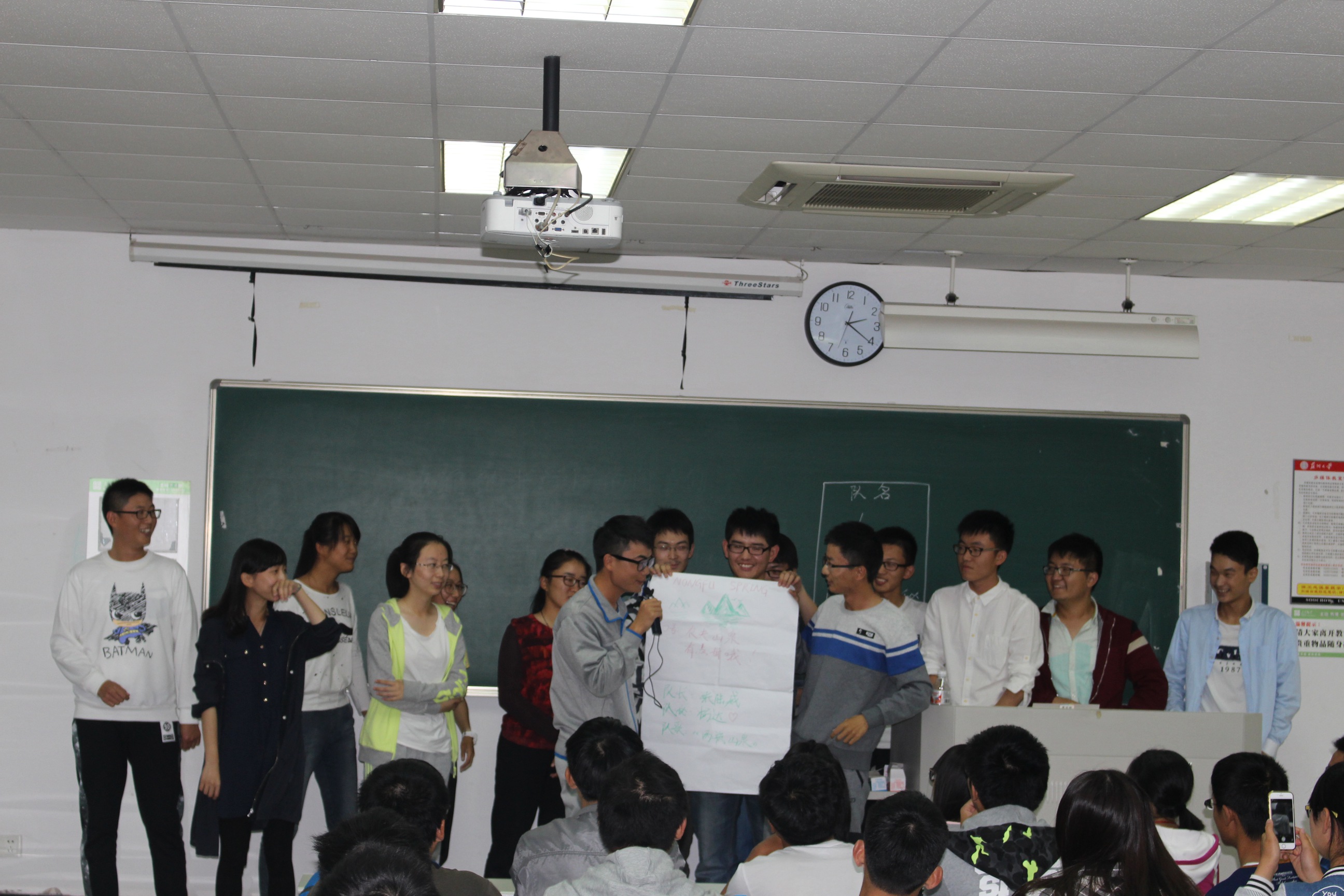 紧接着,老师将同学们分成了六个小队。每个小队给予了一定的时间来确定队长、队名、口号以及队歌。在小组进行自我介绍的时候,我们可以发现:有的小队高冷严肃、有的小组幽默风趣;但是不管怎样,都有一点:他们对接下来的游戏充满了信心。