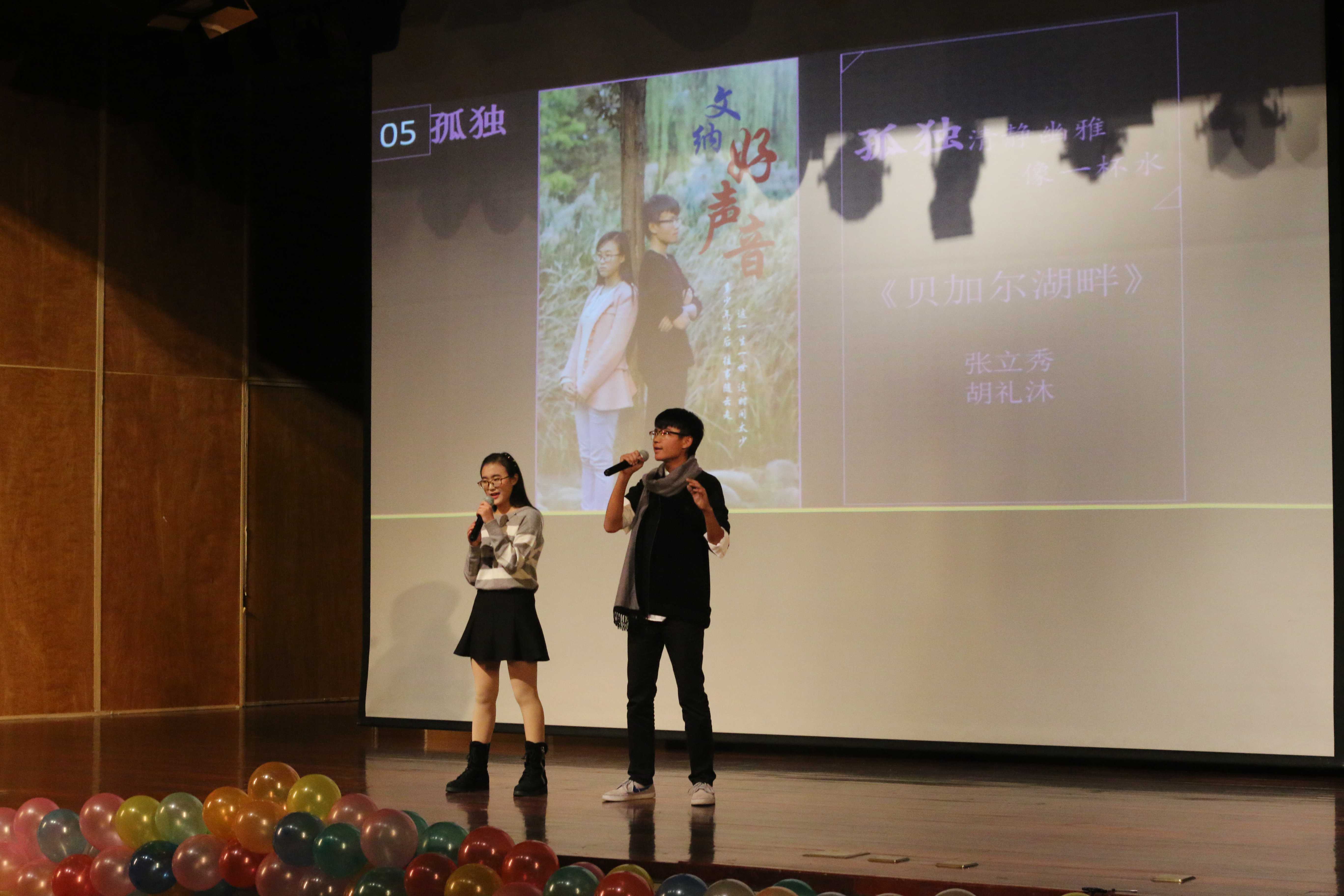 2015年11月8日晚上6:30,苏州大学纳米科学技术学院在601音乐厅举办了“文纳好声音”流行歌曲演唱比赛活动的决赛。此次活动由纳米科学技术学院和文学院学生会联合主办。出席嘉宾及评委包括我院本科生辅导员蔡梦婷老师、文学院学生会副主席陈新怡、音乐爱好者社团副社长,音乐学院学生发展中心主任陈慧娴、音乐爱好者社团社长,音乐学院学生会副主席李楚获、文学院学生会活动部部长董正、文学院音乐爱好者冯嘉莉。比赛过程中,各位选手都发挥得十分出色,为大家带来了一场精彩纷呈的视听盛宴。