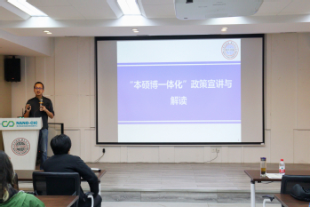 随后,学院副院长王穗东教授为同学们做推免政策解读,王院长从学院推免政策、加分细则、时间规划等方面为同学们展开了详细介绍;学院副院长李彦光教授开展“本硕博一体化”政策宣讲与解读,并围绕“读研选择最需要重视的五个问题”带领同学们从新的角度思考未来规划选择。
