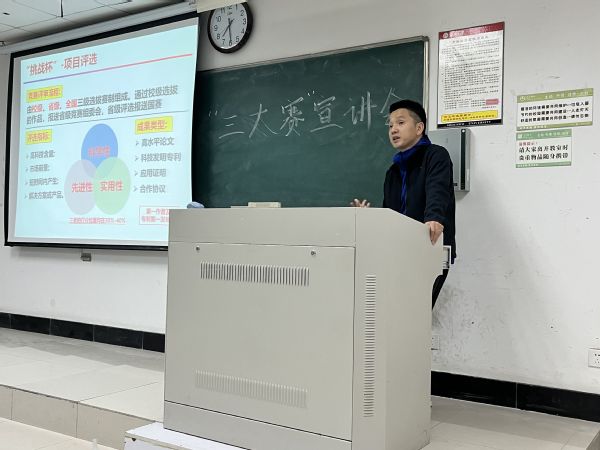 最后,袁老师介绍了“挑战杯”大学生课外学术科技作品竞赛,细化讲解了其中的奖项和流程,并强调了团队精神、领导能力以及协调工作能力的重要性。
