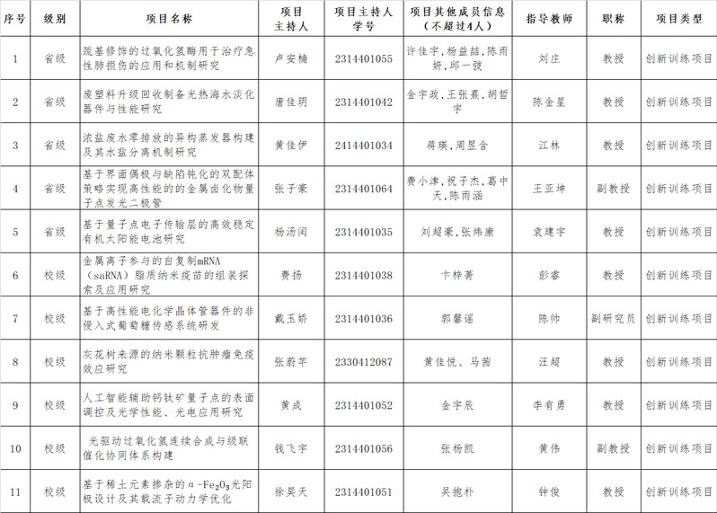 经学院通知、学生申报、院内评审遴选,现对2025年度大学生创新训练计划省、校级拟推荐项目进行公示,具体如下: