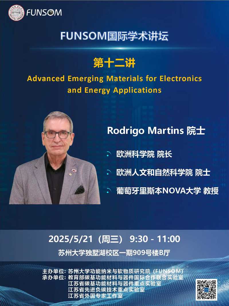 Rodrigo Martins, full professor at FCT-NOVA, expert in Advanced Functional Materials for electronics and energy applications, with more than 1350 papers published, cited more than 41100, with an h-index of 100; running president of the European Academy of Sciences, director of the Associated Laboratory i3N, the Institute of Nanostructures, Nanomodeling and Nanofabrication; former: President of International Union of Materials Research Society - IUMRS; member of the Scientific Council of the European Research Council; member of the Advisory Council of DG prosperity in the frame of European Programme Horizon (2014-2016). Coordinator of the Emerging Printed Electronics Research Infrastructure (EMERGE) the first in Europe beyond Silicon.