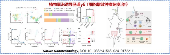 汪超教授、刘庄教授研究发现,口服大蒜衍生的纳米颗粒(GNPs)可以通过诱导肠道中产生干扰素-γ的内源性γδ T细胞,使其迁移至肿瘤重塑肿瘤免疫微环境,从而增强肿瘤免疫检查点阻断疗法对实体肿瘤的治疗效果,为基于γδ T细胞的免疫治疗提供了一种新的方法。该项工作于2024年7月25日在Nature Nanotechnology(《自然 纳米技术》)期刊线上发表。