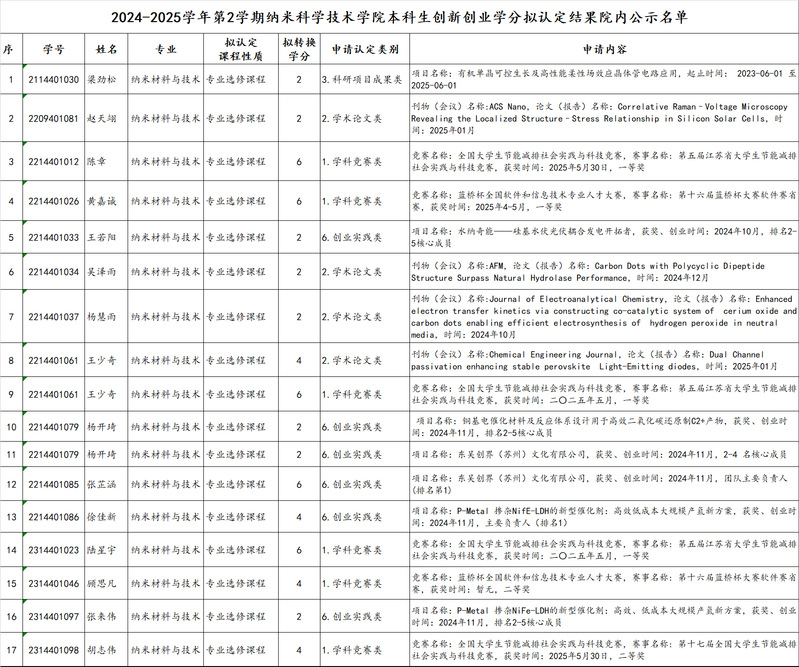 经院内通知发布、学生申报、审核认定,以下同学通过2025年第一轮创新创业学分认定,具体名单如下: