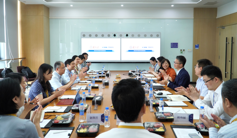 在交流环节,吴鹏首先向宁德时代公司介绍了学院概况以及人才培养、科研创新、产学研合作等情况,现场向宁德时代人力资源部转交了10份就业和定向实习与科研的研究生求职简历。袁建宇介绍了学院在新能源材料领域的研发情况,并就未来新能源电池技术研发开展合作领域进行了探讨。