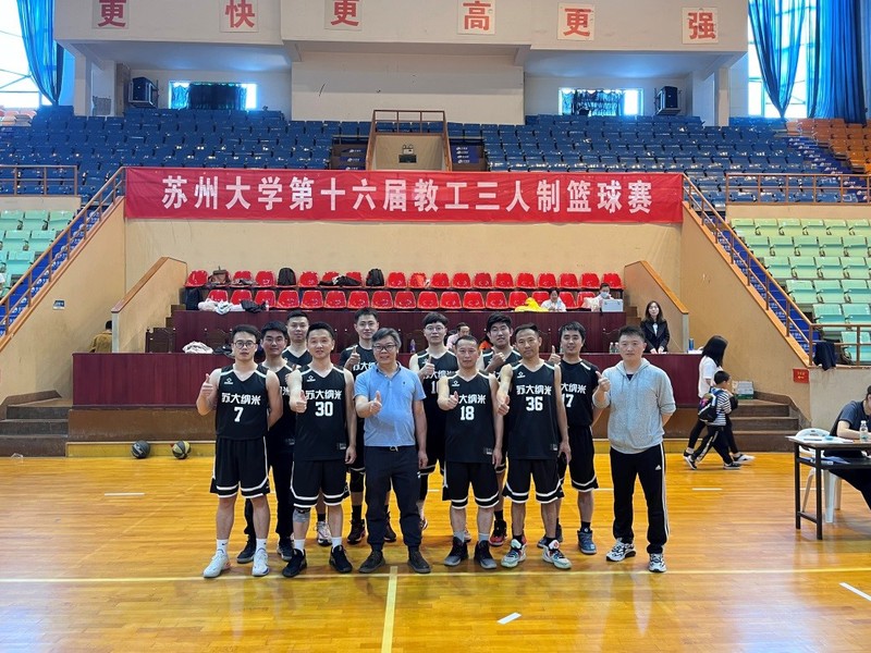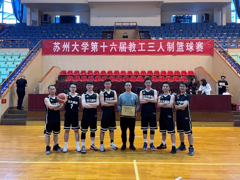 5月13-14日,由苏州大学工会主办,苏州大学教工篮球协会承办的苏州大学第十六届教工三人制篮球赛顺利举行并圆满落幕。本次比赛共有来自我校各分工会的30支队伍,我院教工篮球队一路过关斩将、奋勇争先、全力配合,取得第四名的优异成绩,创造了我院教工篮球队的历史最佳成绩。