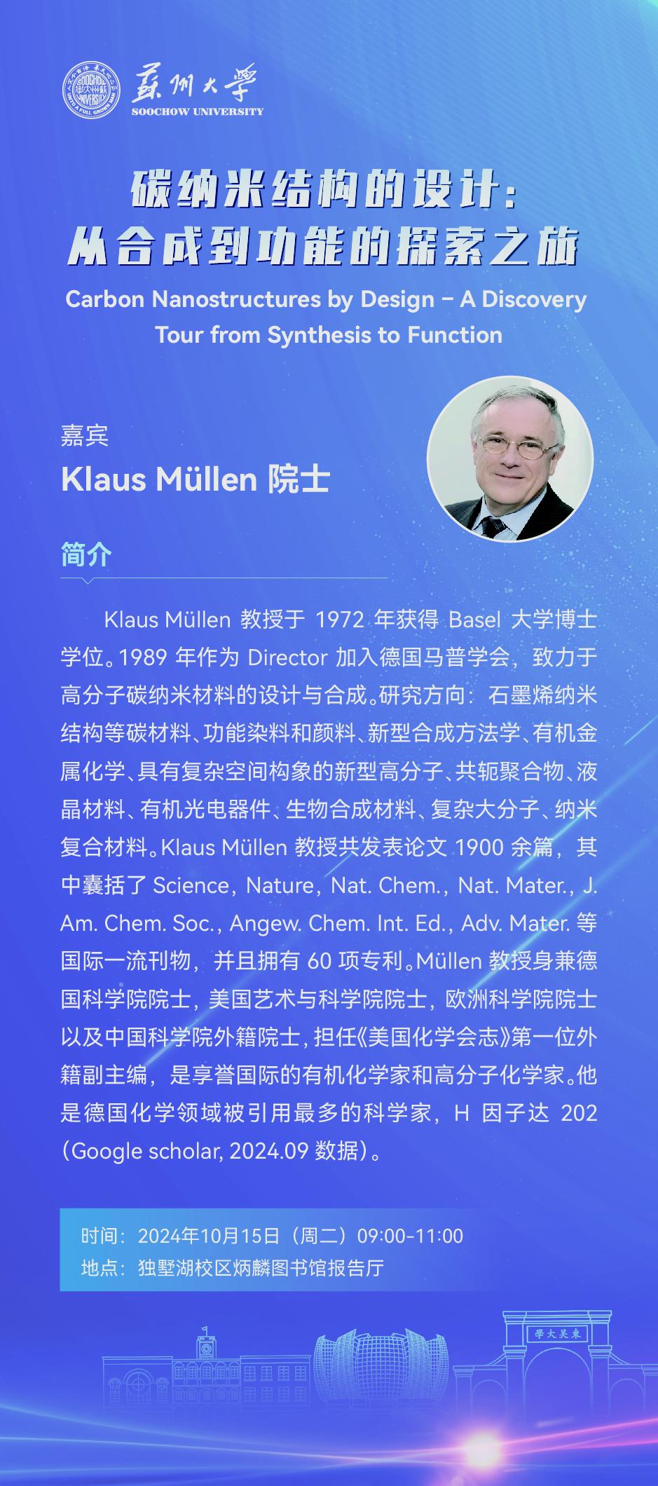 马克斯·普朗克聚合物研究所Klaus Müllen院士10月15日上午学术报告