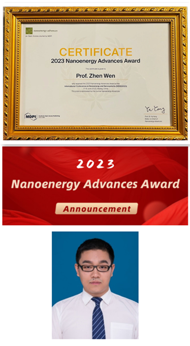 近日,第六届纳米能源与纳米系统国际学术会议(International Conference on Nanoenergy and Nanosystems,NENS)在北京举行,大会颁发了其下设的学术荣誉奖项。我院文震研究员荣获“先进纳米能源奖”(2023 Nanoenergy Advances Award),在此谨向文震研究员致以热烈的祝贺!
