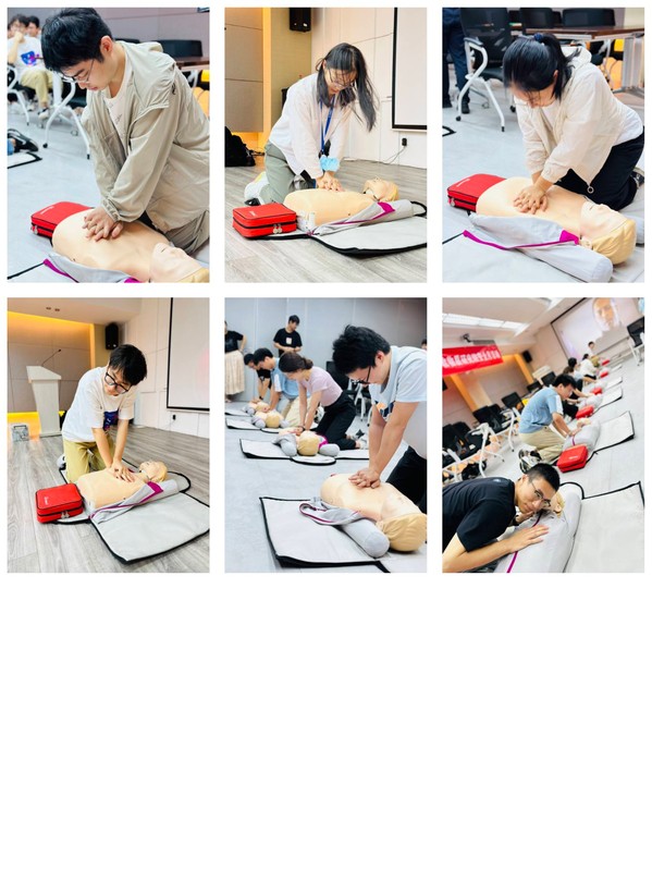 此次培训的30名师生在专业老师指导下,使用假人和AED模拟机上手操练、反复练习,最终全员通过考核,获得了救护技能认证。