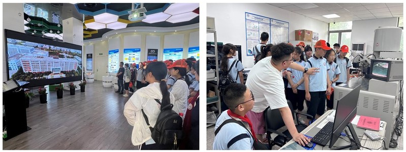 讲座结束后,游学团的师生们在袁建宇老师和志愿者学生的带领下先后参观了学院纳米科技协同创新中心展厅以及光学检测平台、超净间等实验室。在参观过程中,同学们兴奋地观摩各个展示台,尽管他们还没有接触过纳米相关的知识,无法真正认识设备的工作原理和运转情况,但同学们对各类科研设备均表现出了浓厚的兴趣,怀着好奇好问的态度,积极听取实验室老师讲解。同学们通过此次游学活动近距离地感受到了科技的魅力,激发了讲科学、爱科学、学科学的热情,参与同学表示这次活动让他们开阔了视野和思维,体验到了科技的神奇力量。