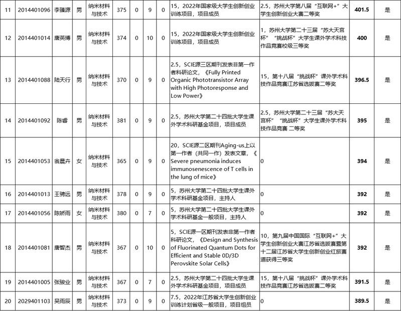 根据《关于组织开展推荐2024年优秀应届本科毕业生免试攻读研究生工作的通知》要求,现将2024年纳米科学技术学院免试攻读硕士研究生的综合评价总分及初选名单予以公示(排名按综合评价成绩从高到低排序),公示期:2023年9月19日--2023年10月8日。