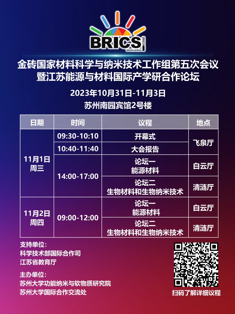 金砖国家材料科学与纳米技术工作组第五次会议暨江苏能源与材料国际产学研合作论坛