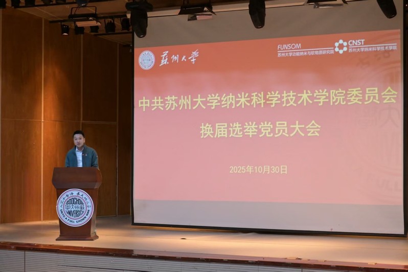10月30日下午,纳米科学技术学院党委换届选举党员大会在独墅湖校区601号楼报告厅隆重举行。学院303名师生党员参加大会,校党委组织部副部长、党校副校长薛曦,党委组织部组织科科长黄河列席指导。会议由学院党委副书记袁建宇主持。
