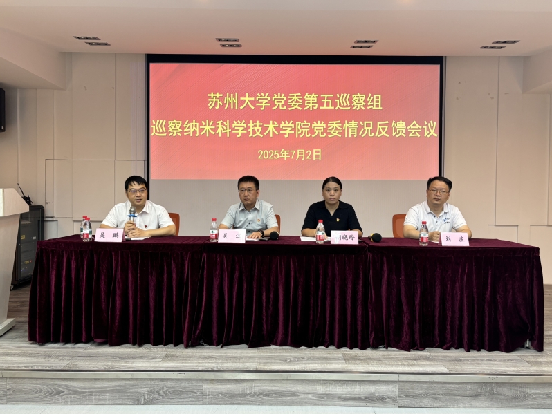 根据校党委巡察工作安排,2025年7月2日,第五巡察组巡察纳米科学技术学院党委情况反馈会议在纳米科学技术学院召开。校党委常委、宣传部部长、第五巡察组组长吴江,音乐学院党委书记、第五巡察组副组长胡晓玲,第五巡察组全体成员,纳米科学技术学院党政班子成员、党委委员、党支部书记、党代会、教代会、工代会代表以及教师代表等参加会议。会议由纳米科学技术学院党委书记吴鹏主持。