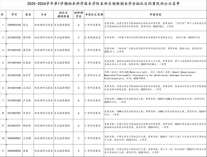 特此公示。公示时间:2025年12月10日--12月16日。公示期内如有异议,请向学院教务老师(吴思聪,邮箱wusicong@suda.edu.cn)实名反映情况。
