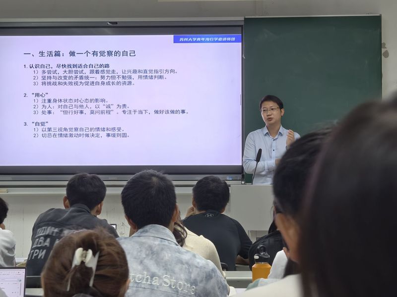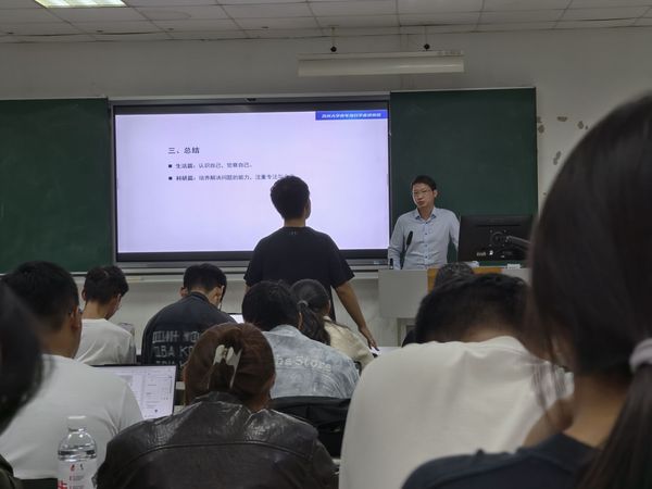 整场讲座内容详实、案例鲜活,既有生活哲学的温度,又有科研思维的深度。最后,崔泽群老师对新生们寄予殷切期望,他表示,生活的本质是不断认识自我、觉察自我的过程,而科研的核心是培养解决问题的能力与协作意识,二者相辅相成、辩证统一。希望同学们能将讲座中的思考与感悟融入大学日常,在探索中成长,在实践中进步,让大学生活既充实又有意义。