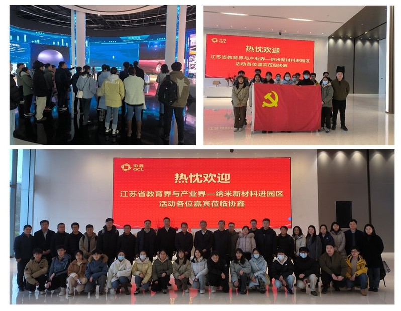 活动首先参观了协鑫(集团)控股有限公司展示厅,超强科技感和数字化的展馆给大家留下了非常深刻的印象。在讲解员的带领下,一行人员详细了解了协鑫集团的发展历程、产业现状以及未来战略方向,领略了“科技协鑫”“数字协鑫”“绿色协鑫”的数智化魅力。学院教授代表与协鑫中央研究院负责人就钙钛矿、数字储能等新兴领域合作进行探讨,就深入推进校企创新联合体建设达成共识。