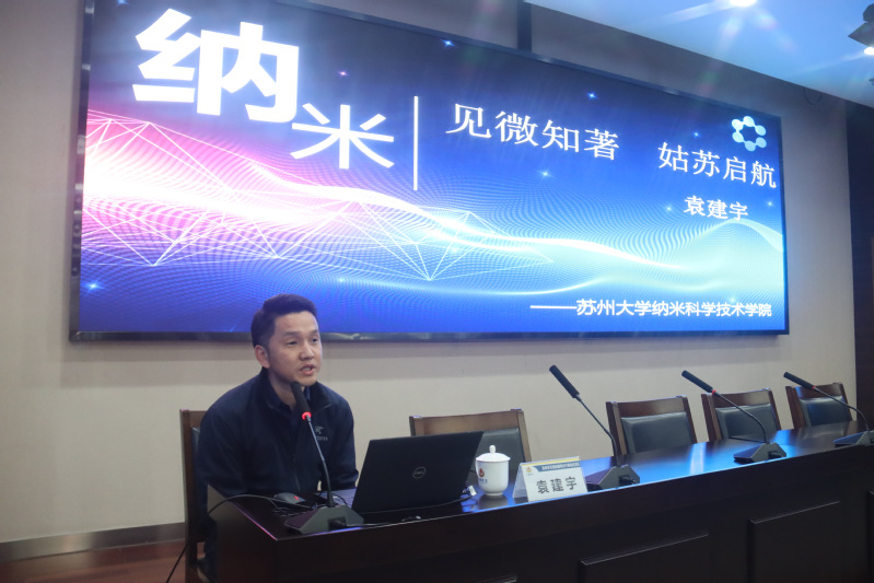 首先,我院党委副书记、副院长袁建宇向中共苏州市交通运输综合行政执法支队机关第一党支部介绍了纳米科学技术学院发展历程。同时,围绕纳米科技的科学定义及其在交通运输领域的应用开展讲座。讲座统筹发挥宏观理论与实践案例的育人效能,对进一步提升交通执法人员科学素养具有一定启示意义。