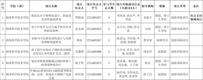 根据学校《关于做好2024年大学生创新创业训练计划立项工作的通知》(创字〔2024〕22号)精神,学院于2024年4月12日-15日间,组织专家组对申报项目进行了评审,遴选产生了我院拟推荐学校的“2024年大学生创新创业训练项目”共6项(详见下方表格),现予以公示。公示期为2024年4月15日-17日。