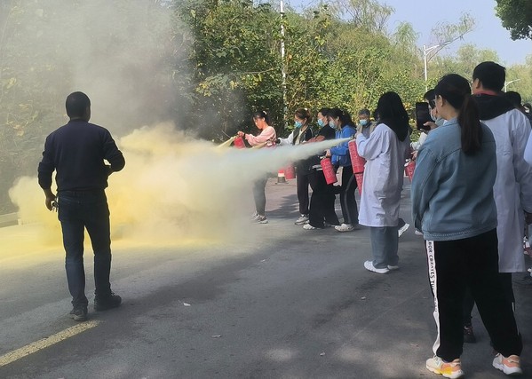 随后在消防器械实操环节,老师同学们积极参与,在实践中进一步学习和巩固了灭火器材的使用技能。