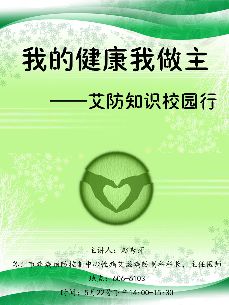大学生心理健康教育系列讲座三活动预告:我的健康我做主——艾防知识校园行