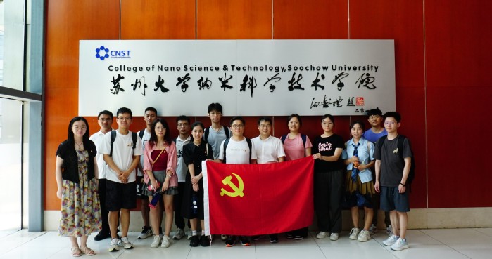 7月20日-23日,清华大学“集材建业,行蘇有华”支队来苏开展暑期社会实践。全国百个研究生样板党支部我院研究生纳米生物党支部与清华大学实践支队共同开展一系列联学共建、学术交流、就业实践等活动。我院党委书记吴鹏、党委副书记袁建宇,研究生总支书记孙宇慧,研究生辅导员董皓、丁大力、双方学生代表参加活动。7月21日上午,清华大学“集材建业,行蘇有华”支队来我院参观,并与我院开展主题为“党建引领 同心筑梦”联学共建党日活动,党委副书记袁建宇从学科建设、科学研究、师资力量、人才培养等多个维度详细介绍学院基本情况,并表示我院一直高度重视与国内外高校的交流与合作,希望以此次交流为契机,加强联学共建和学术交流,构建“资源共享、优势互补、互相促进、共同提高”党建工作新格局,充分释放“1+1>2”效应。研究生总支书记孙宇慧详细解读了纳米生物党支部实践探索和建设成效,充分展现了我院研究生党建“双百”工作风貌。