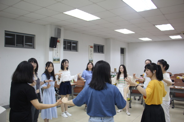下一个环节是游戏。游戏和解忧信箱一样,围绕学习、生活等方面分块展开。第一个游戏是与生活有关的“不能做挑战”,每位同学分得1张卡片,不能看正面内容。每人都在头上绑一张卡牌,玩家们可以用任何办法诱导对方做出或说出头上卡片的内容,描述出卡牌上内容即为胜利,做出卡牌上的内容即为失败。这个活动旨在告诉同学要在生活中坚持住自己的判断,不能轻易受他人干扰。随后,主持人向大家展示了4个生活中的典型问题,让大家抽签进行讨论,每组派出代表分享讨论成果。第二个游戏是与学习相关的“击鼓传花”。它与专注度、反应、技巧息息相关,这些也是我们学习上所必须的。在这个活动中,同学们收获颇丰,许多多才多艺的同学为大家表演了节目,大家都非常热情放松。接下来的两个放松游戏和团队协作有关,当大家成功完成随机组队结绳游戏时,人群中不约而同地爆发出了激烈的掌声,虽互不相识,但能为同一件事开心激动,这就是团队的力量。