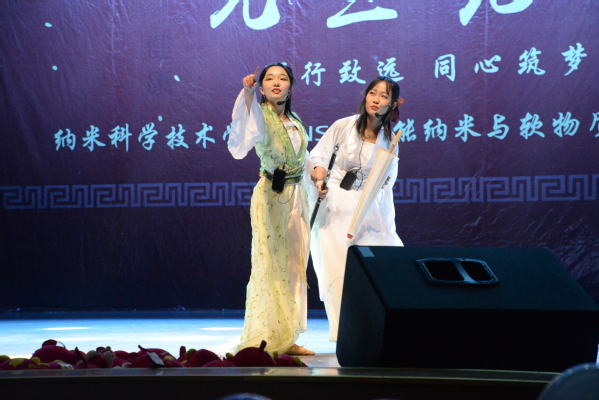 随后,唐建新、樊健课题组的任昊、曾馨逸、蔡晓艺等同学登台,精彩演绎舞蹈《Let’s dance》。其充满动感的节奏、饱含力量的舞姿,成功调动起全场的氛围。而杨阳老师独唱的歌曲《祖国你好》,饱含着深情,在对祖国美好未来的展望之中,用优美的女声倾吐着对祖国融入血脉的热爱。接下来,罗袖飞逸、衣衫舞动,于古色古香的氛围之中,胡欣悦、王心悦、蒋雨童等同学献上舞蹈《典狱司》,其飘然若仙的舞姿,交织着戏腔与说唱的伴奏,令台下观众沉浸其中。