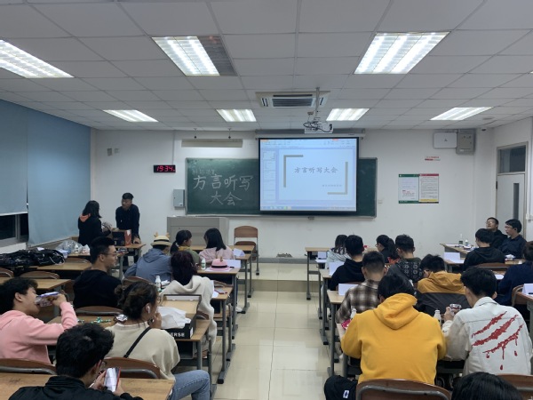 比赛规则很简单,大屏幕上放映有关各地方言的选择题,两人一组进行选择,按照答对题目数量评选一二三等奖各一名,参与奖两名。题目均由项管部部长、干事制作,内容包括听力题,语境判断,阅读,出题顺序为从江苏省内到江苏省外。本次比赛为各组同台竞技,意在让大家感受比赛激动人心的快乐,又让大家在亲身体验各地方言的同时拉近同学们之间的距离,让同学们感受中华语言的博大精深。