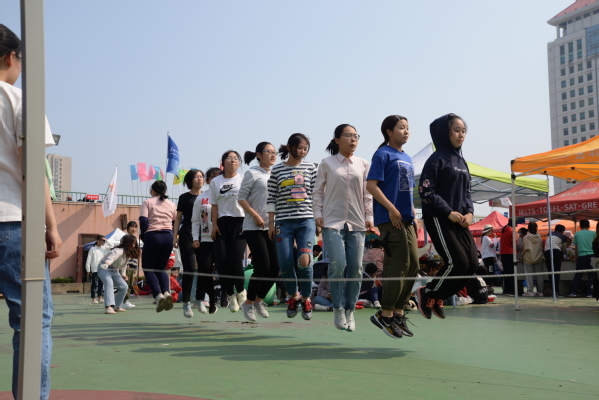 运动员们早早来到检录处,排队等候参加今日的比赛。纳院十名女生齐心协力,在一分钟时间内突破自我,赢得团体第六的好成绩。跑道上,圣灵零、操瑞、俞哲鸿、苏迎奥等同学参加了200或800米的赛事,阳光下他们飞驰而过的身影是那么飘逸。草坪上,跳高跳远的同学们身姿矫健,一跃便是一道道优美的弧线。而在学校另一处的赛场上,绳子打在塑胶地面上啪啪作响,男子跳绳运动员们凭借着彼此间的默契和实力,取得了团体第十一名的成绩。