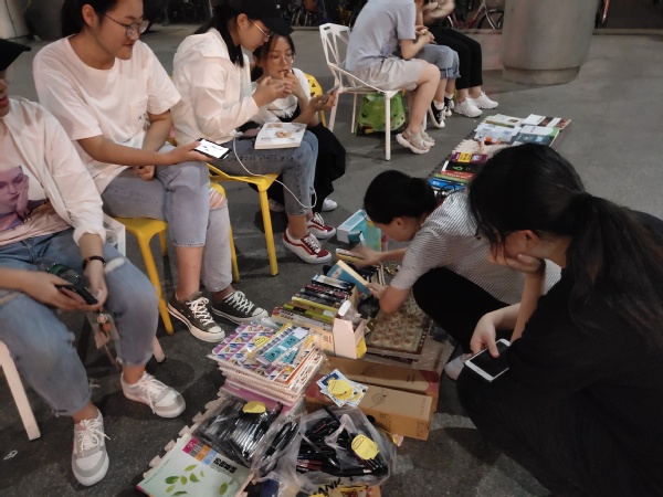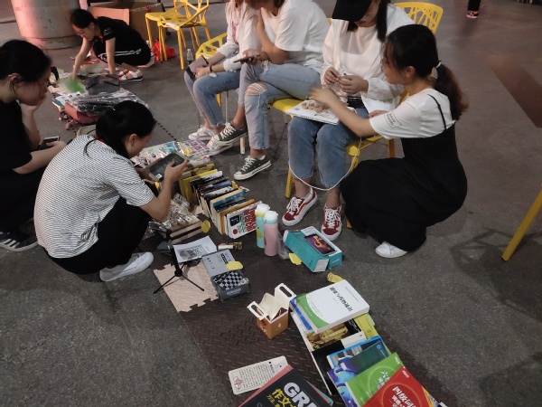 活动过程中,陆续有一些大三大四的学姐学长带来了一些高年级所需要的书,在场的工作人员也在没有生意的时候给自己买了一部分必需的教材,活动的过程中,还有一些别的学院路过的同学们停下匆匆的脚步挑选了一些课外书和词汇书。七点半,秋季跳蚤市场落下帷幕,结算今日所得,也算是收获颇丰呢!