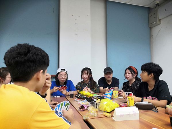 在老乡会的开始,来自社联管理中心的主持人为新生们献上开场致辞以及对未来学习生活的祝福。紧接着是视频播放环节,视频由社联传媒中心制作,视频中展现了新生的照片,增进了新生们相互之间的认识,新生的每一桌都有他们的老乡们。这些“老乡”也许是他们的同届同学,也许是他们的学长学姐。在简单的相互问候和自我介绍之后,“老乡会”来到了新加入的“趣味问答”环节。每一桌新生组成一个小组,自己协商起一个队名,齐心协力完成学长学姐们准备的趣味问卷,包含了“苏大”,“纳米学院”,“方言”,“美食”共四个主题。最后由来自四川的同学组建的“麻婆豆腐”队获得了一等奖,其他还有七支队伍分获二、三等奖,获奖队伍的成员们有序地到准备室登记领取奖品。最后是老乡会传统的桌游环节,老乡们一起玩桌游,增进相互之间的感情,其乐融融,整个教室上下充满了欢快的气息。晚上9点,活动结束,新生在欢声笑语中陆续离场,不少新生选择在海报前拍照留念,可见他们确实在“纳米老乡会”中收获到了快乐和喜悦。活动结束后,三个教室内的桌椅都被恢复至原位,垃圾也被清理干净带走。