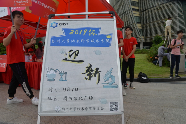 201997日,炳麟图书馆前的广场热闹非凡,因为今天,来自全国各地的苏大19级新生入学了。为了帮助学院19级新生及时报到并顺利入住宿舍,纳米学生会全体成员参与了此次迎新活动。