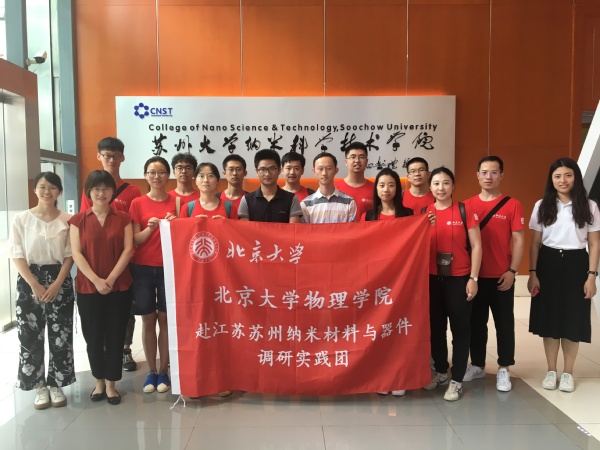 718日,北京大学物理学院赴江苏苏州纳米材料与器件调研实践团一行十二人来我院交流访问,我院副院长王穗东老师、纳米材料与器件研究方向的刘泽柯老师和邓巍老师以及本科生辅导员蔡梦婷老师、研究生辅导员彭陈诚老师参加了此次活动。