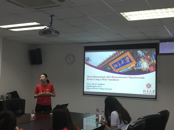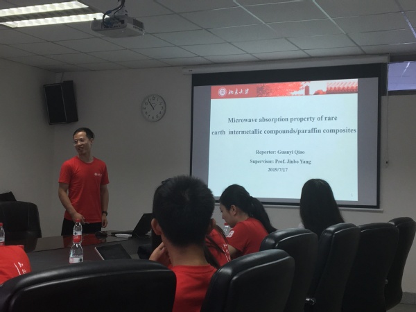 会上,北京大学物理学院辅导员王老师从发展历程、学院现状及培养机制等方面详细介绍了北京大学物理学院的办学情况,并重点介绍了近年来学校在国际合作方面的举措和成效。随后,北大学生代表李盼博士、尤思凡博士和乔冠一博士分别Mixed-Dimensional vdWs Heterostructure Optoelectronic Devices Using p-MoS2 Nanosheets”“Pt(111)表面水的结构和分解研究以及“Microwave absorption property of rare earth intermetallic compounds/paraffin composites”主题做了相关学术报告,我院研究生就报告中的热点问题与北京大学的博士生进行了深入的交流探讨。最后,双方与会人员交流讨论了各自人才培养、学科建设和发展的细节等等。