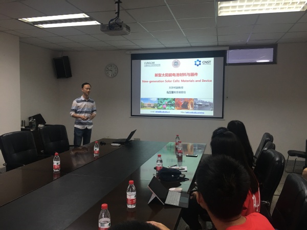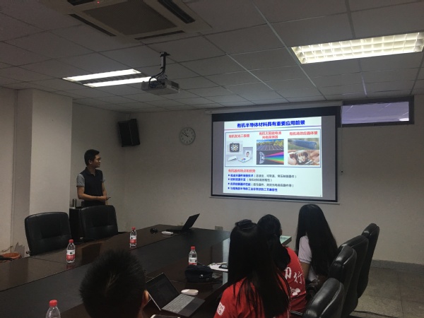 本次交流会在我院910308会议室举行。首先,王穗东副院长对访问团一行表示了热烈欢迎,并且在围绕发展历程、科学研究、人才培养、协同创新等方面,简要介绍了我院现在的基本情况和建院以来所取得的成绩,重点介绍了我院人才培养的举措,人才引进及人员招聘方面的支持措施等。随后,刘泽柯老师和邓巍老师分别以“新型太阳能电池材料与器件”及“有机微纳单晶大面积图案阵列化及其器件应用”为主题做了相关学术报告,引起了与会学生的热烈讨论。