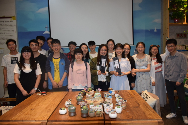 活动临近尾声,大部分同学自制的DIY盆栽已制作完毕,青协的干事把所有制作完成的盆栽放在一起,并进行评比。最后,崇欣同学、马欣同学、周霈霈同学制作的盆栽入围了前三名。