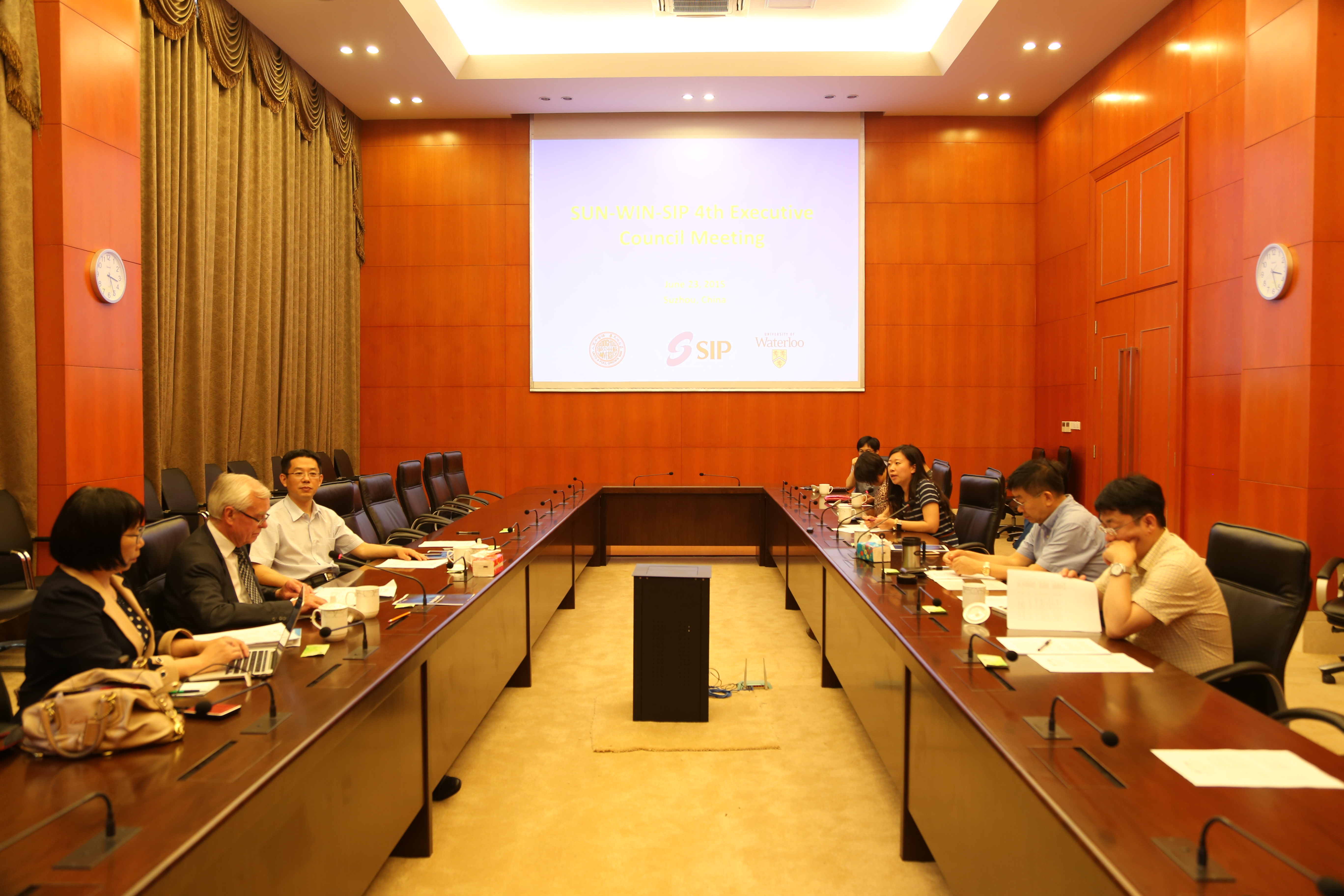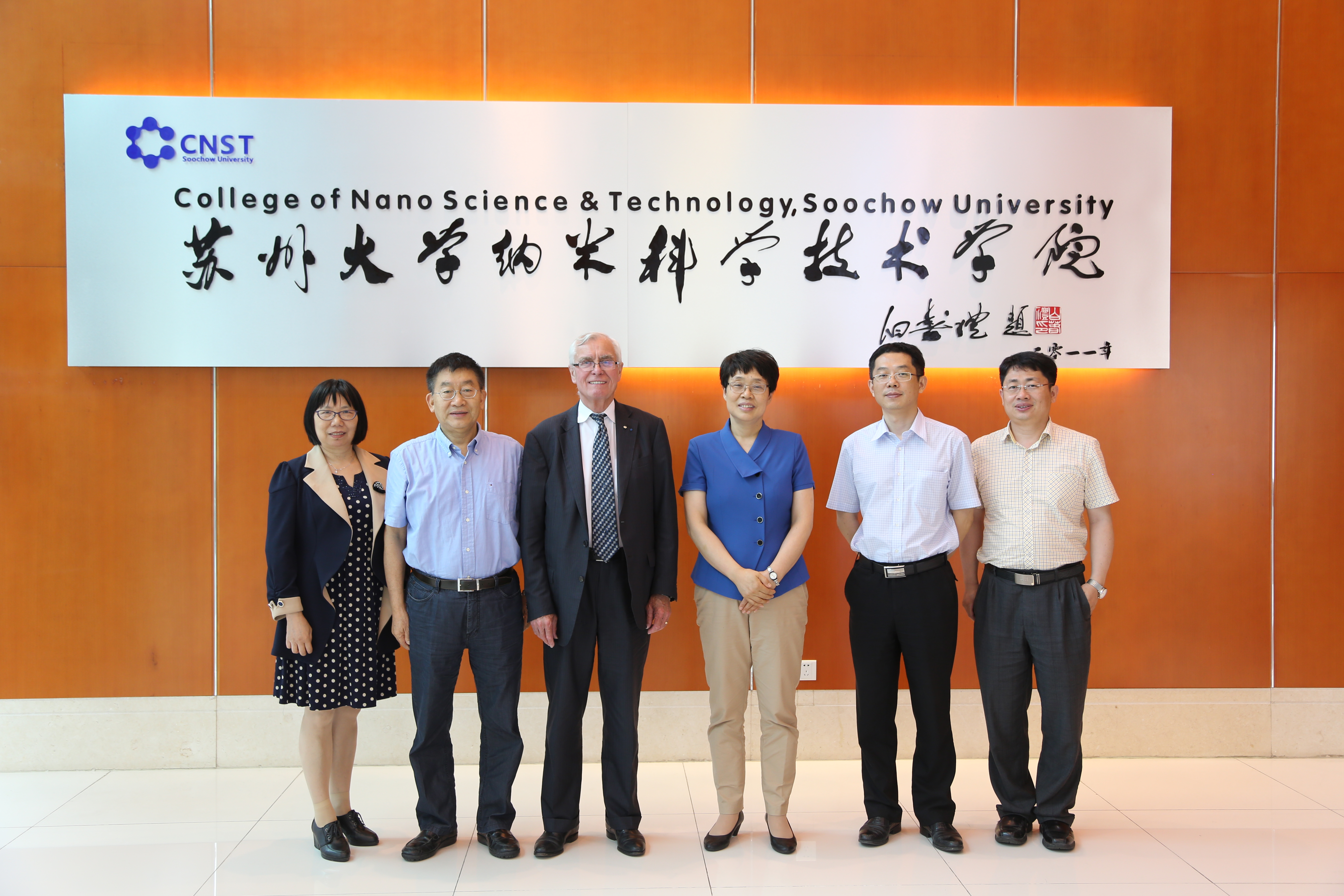 2015年6月23日,苏州大学-滑铁卢大学-苏州工业园区联合办学和科研协作第四届理事会在苏州大学独墅湖校区纳米学院909号楼A厅会议室成功召开。滑铁卢大学纳米技术研究院执行院长Arthur Carty教授,苏州工业园区科技局副局长虞吉强,苏州大学副校长路建美教授,材化部潘勤敏教授,纳米学院院长李述汤院士、副院长孙旭辉教授等出席了会议。会议由李述汤院士主持。