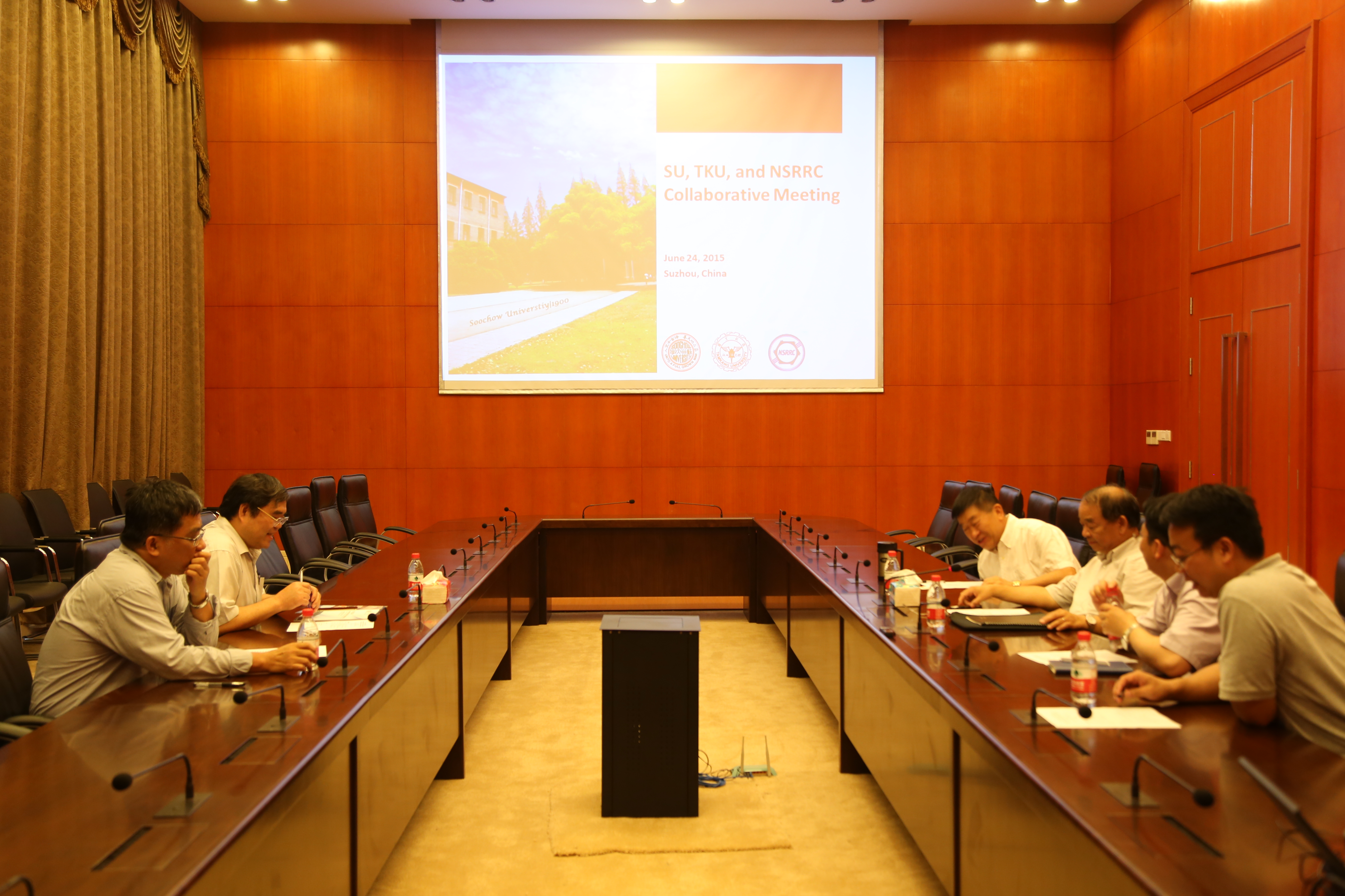 座谈会上,首先,我院院长李述汤院士、副院长孙旭辉教授、同步辐射中心主任Tsun-Kong Sham教授等对宾客的到来表示了热烈的欢迎。然后,孙院长和Sham教授分别就FUNSOM及同步辐射中心的基本情况进行了介绍,黄主任也对台湾光源的发展及线站的情况进行了讲解。