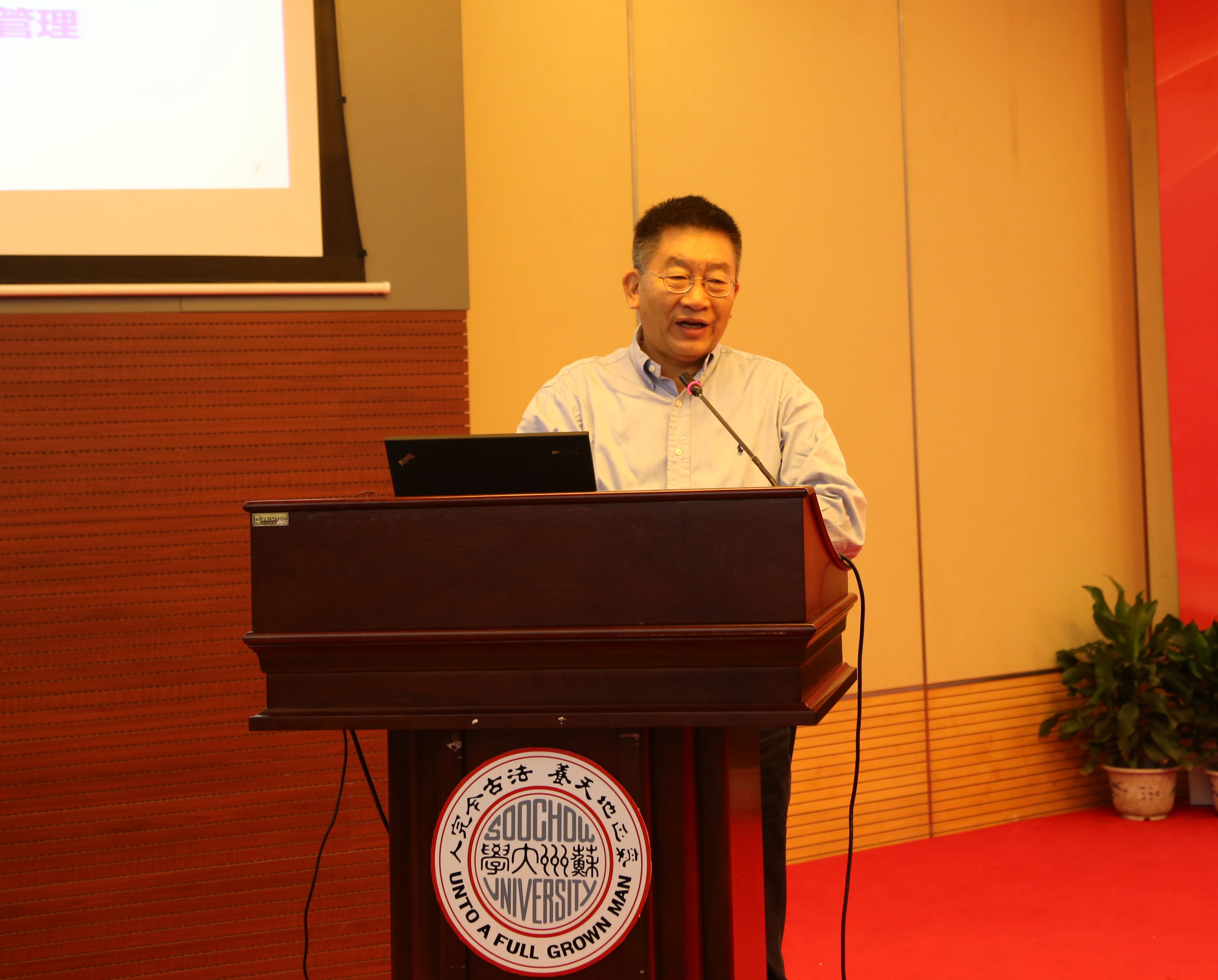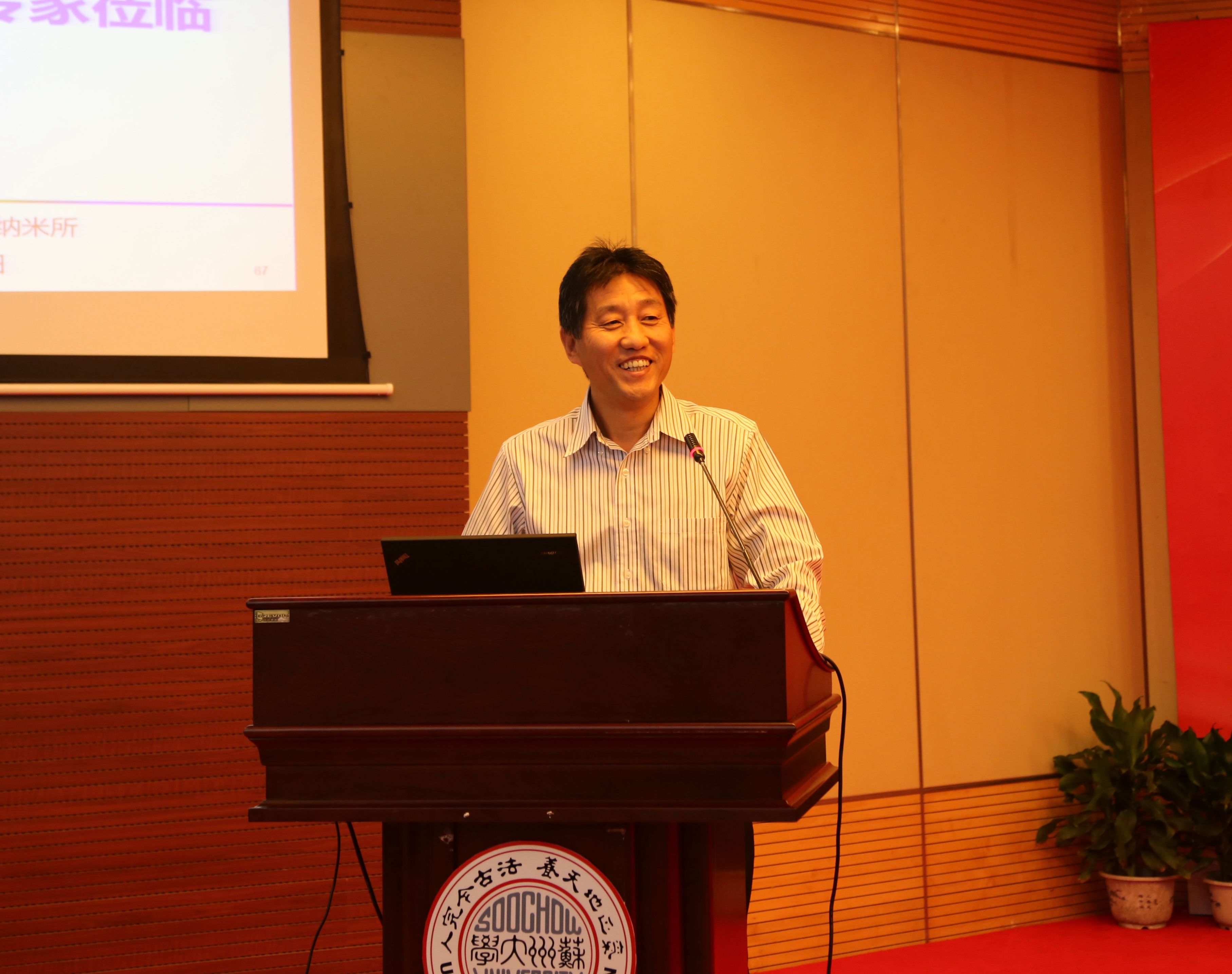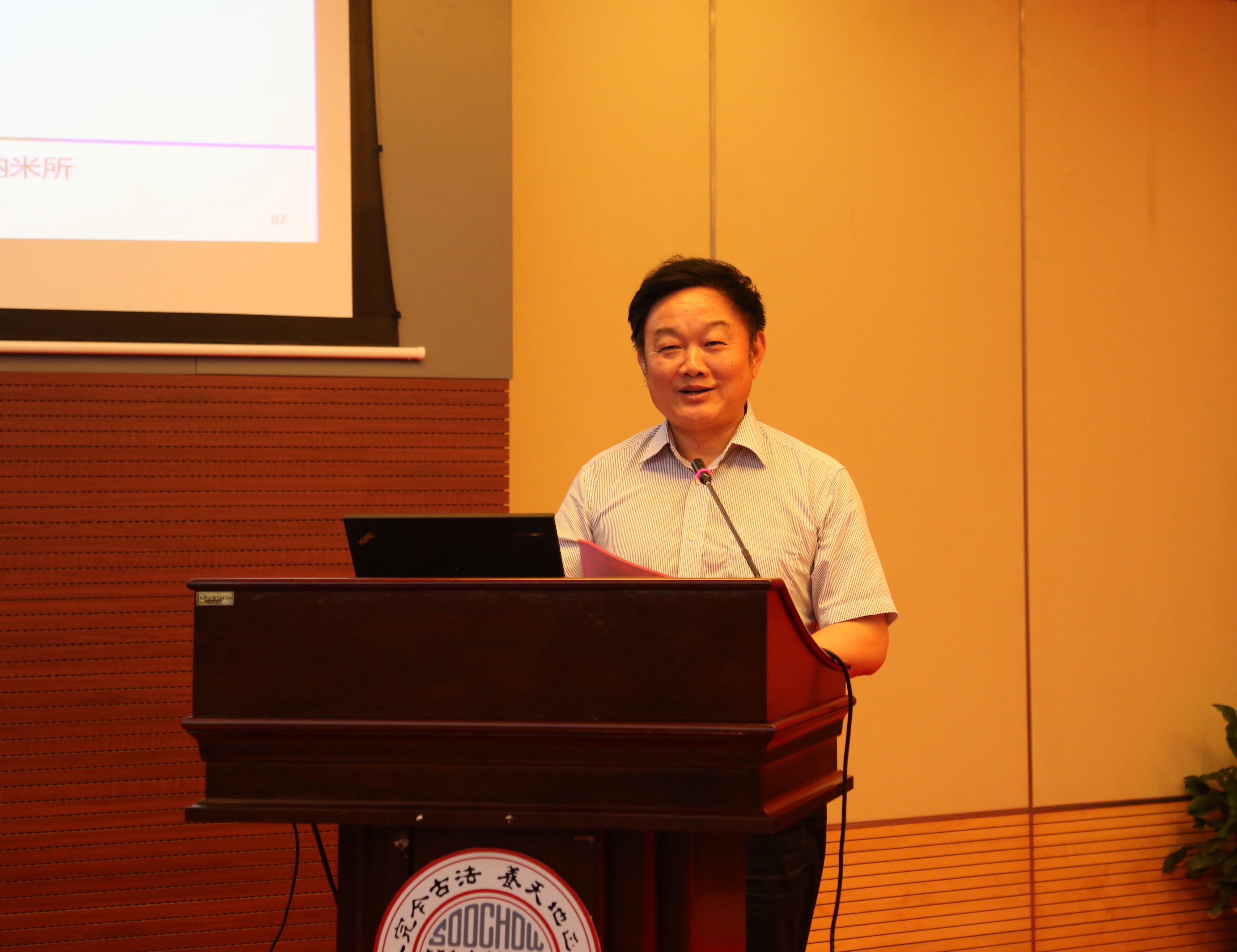 杨辉所长详细介绍了苏州大学与苏州纳米所近年来在纳米科技方向的合作历程,期待双方的进一步深入合作,并预祝重点实验室取得圆满成功。