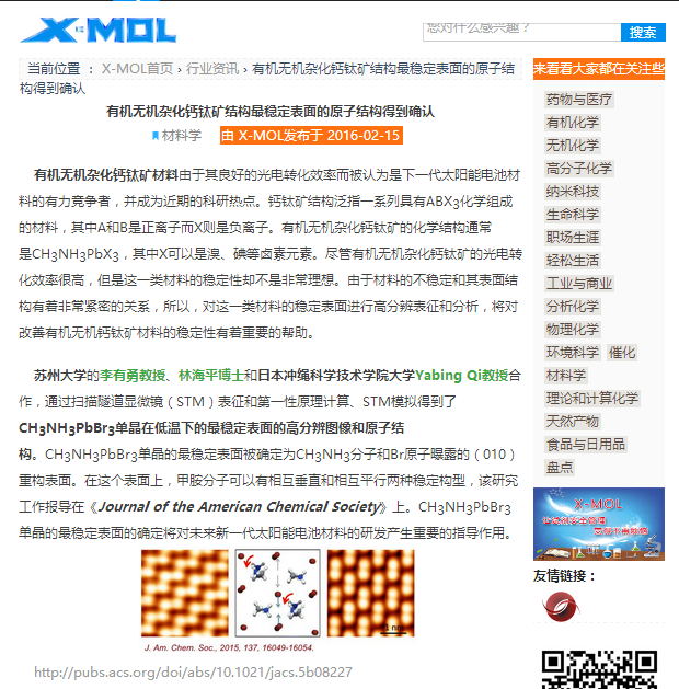 原文标题:Real-Space Imaging of the Atomic Structure of Organic�Inorganic Perovskite