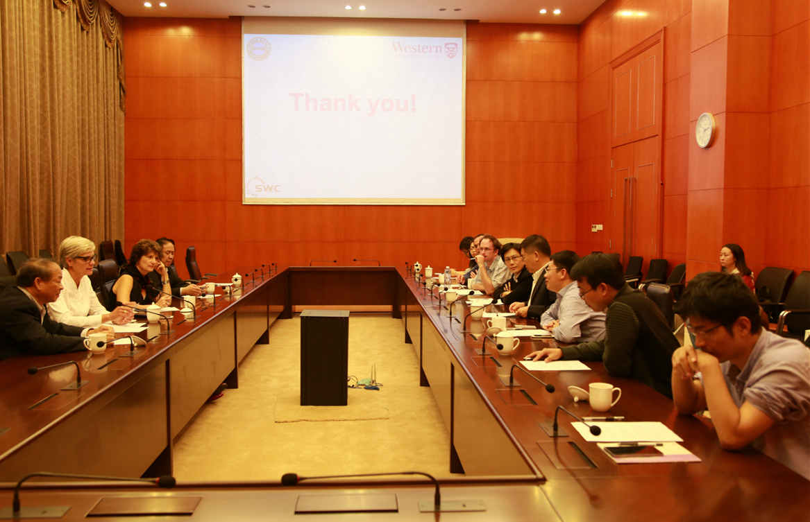 会议期间, 西安大略大学Janice Deakin副校长、Tsun-kongSham教授分表代表西安大略大学及同步辐射中心发表了讲话,介绍了近期发展情况。我院孙旭辉副院长简要介绍了FUNSOM、CNST及协同中心的发展历程,并重点介绍了同步辐射中心自建设以来的成果。介绍结束后,双方就国际合作项目展开了讨论,西安大略大学代表团对我院科研成果高度评价,并表示了对进一步深入开展国际合作项目的兴趣。